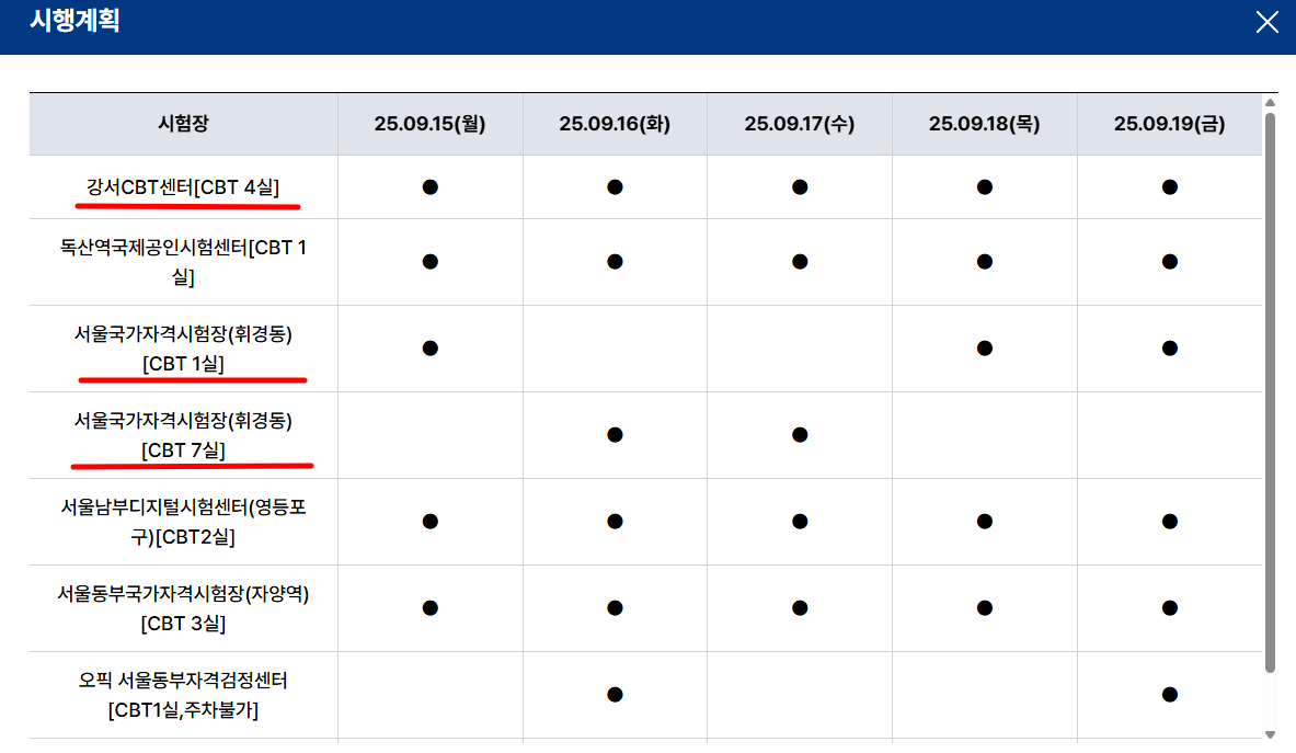 q-net 홈페이지에서 시행회차 및 종목 지역 조회 가능하니, 거주지 기준으로 해서 조회를 하시면 시/군/구 까지 자세하게시험칠수 있는 날짜 및 시험장 조회가 가능하니, 시험치기 전에 꼭 체크해 주세요.