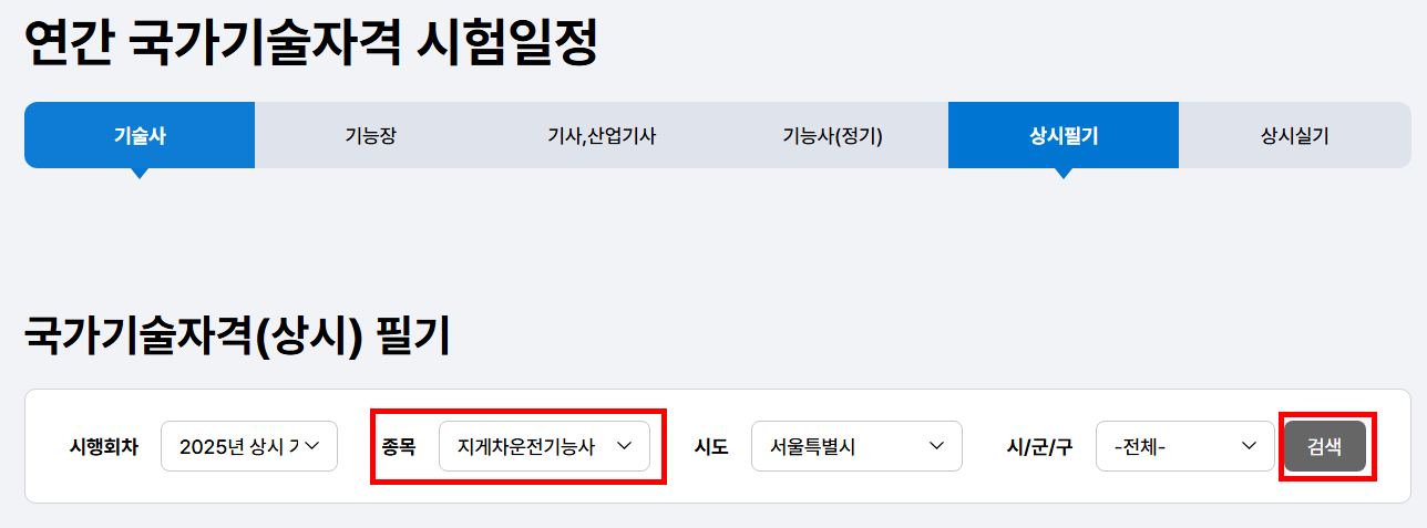 실기시험은 원서 접수가 매우 치열해요. 원하는 시험장과 일정이 있다면 접수 첫날 오전 10시 정각에 맞춰서 바로 접수해야 해요!